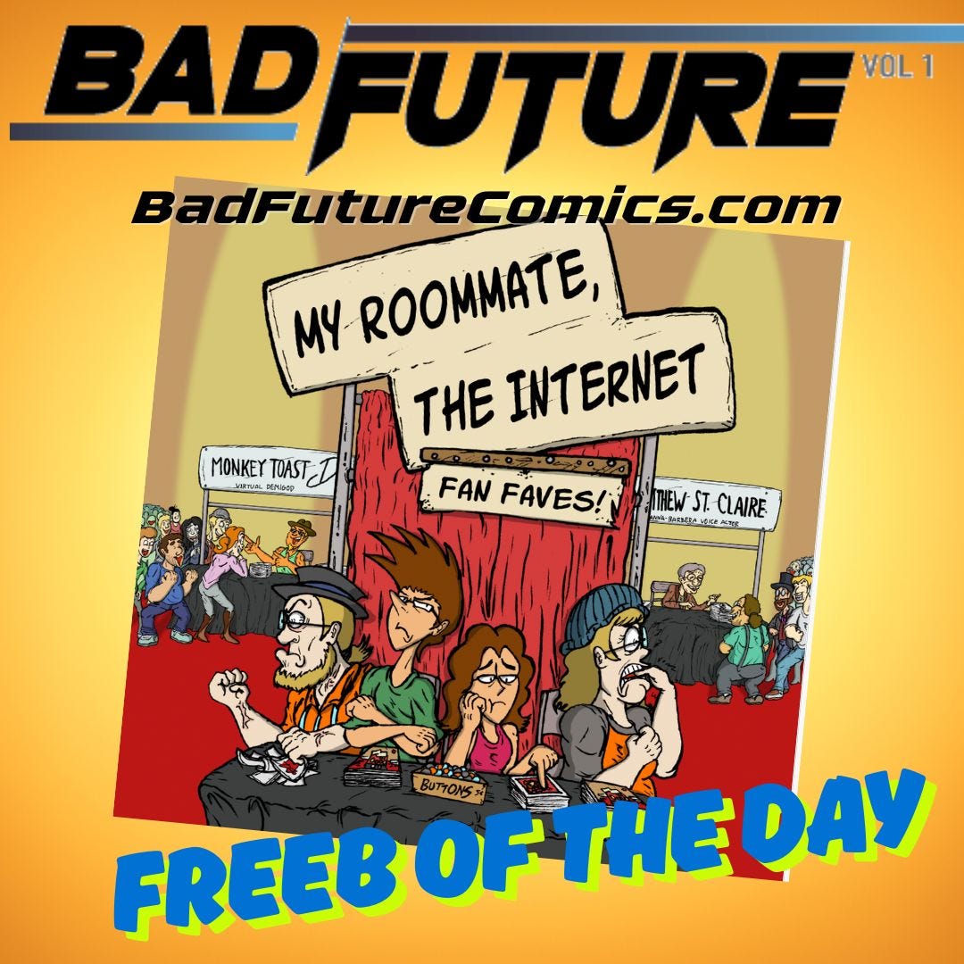So I started with a book of mine (SIREN’S SONG) and so to come full circle, I’m giving the best of collection ofa webcomic I created with artist Alexander Neish, MY ROOMMATE THE INTERNET, about living with someone with typifies everything annoying about the internet. Though intended as silly fun, time has given an odd dystopian twist to this comic, as it captures a time when our online life was merely annoying instead of downright toxic.