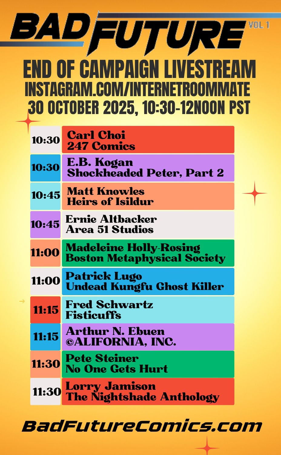That job, however, belongs to Future Me. Present me is doing everything to get the word out to everyone corner of the internet before the campaign closes, and I’m celebrating the end of a successful campaign with some of my indie comics friends with a Livestream on Instagram tomorrow, Thursday, October 30th from 10:30-noon PST.