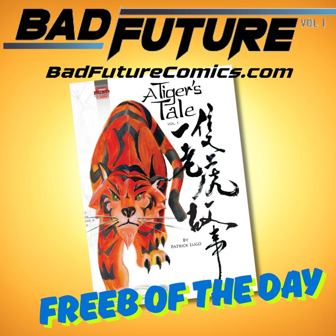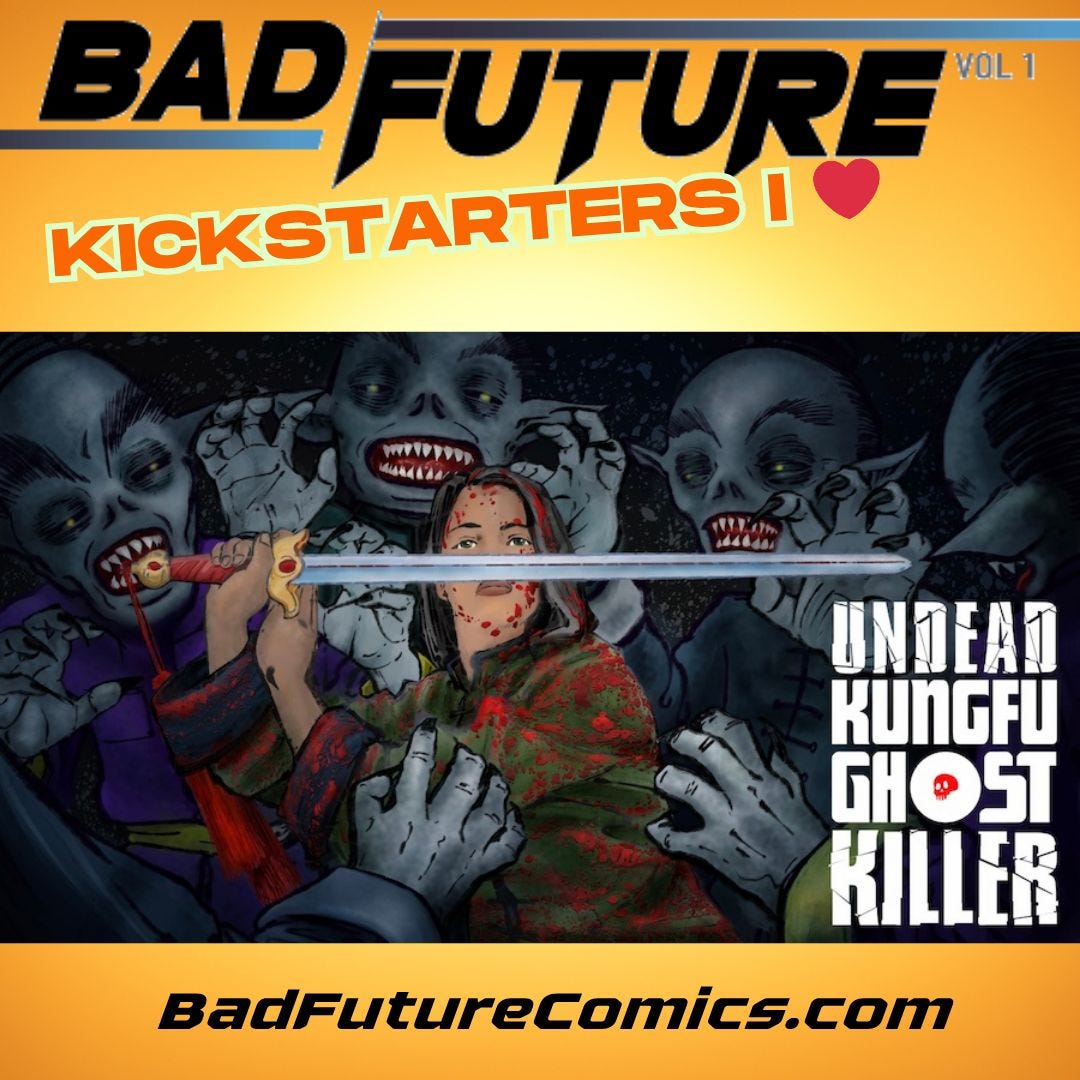 As part of the fun, PLUGO/Patrick Lugo is giving a special offer to BAD FUTURE backers. Did you like his digital giveaway of his A TIGER’S TALE? Patrick is offering the connected tale INTRO TO THE KUNG FU FOREST to BAD FUTURE backers as a digital giveaway for anyone who backs his current Kickstarter Undead Kungfu Ghost Killer, but you have to use this special link.